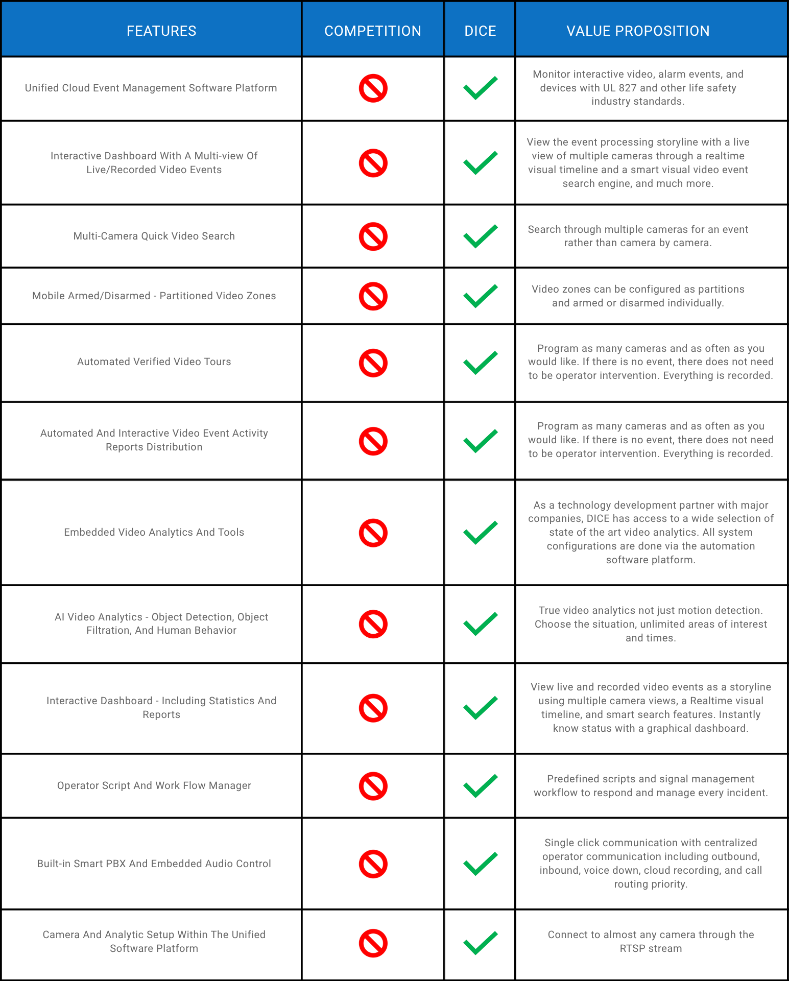 The only industry solutions provider that is also a Telecom/ISP company with a hybrid system designed to be an enterprise-centered event management platform for video and intrusion that complies with UL 827A and other life safety systems.